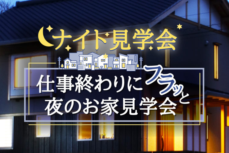 たまたま早く帰れた仕事終わりにぜひ立ち寄っていただきたいと思い企画しました。 夜だからこそお家づくりの参考になる部分もあるかと思います。 ぜひ見学の中で、お家づくりのイメージをふくらませてください。