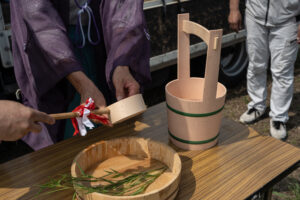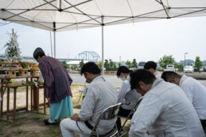 まずは設営から盛り砂づくり、手水で清めて