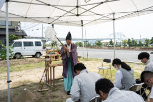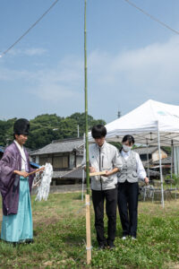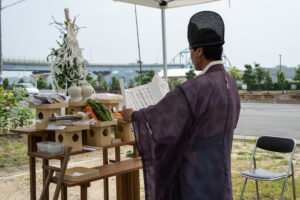 祝詞奏上(のりとそうじょう) 工事の安全と家の繁栄を祈る旨の祝詞を奏上する