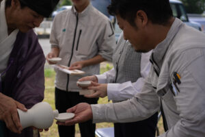 直会(なおらい) お供え物のお神酒をいただく
