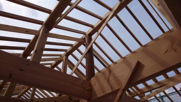 建替のこのお宅。以前。、床の間で活躍していた『床柱』を屋根を支える『小屋束』として、新しい家を見守ってくれます。