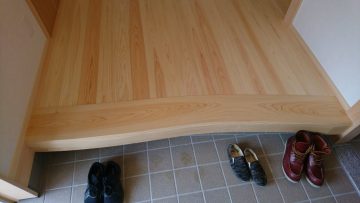 玄関『框(かまち)』が自然の美しい胸腺を描いてますね。