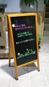 当社の玄関先でお客様をお迎えする『ウェルカムボード』が描き直されていました。