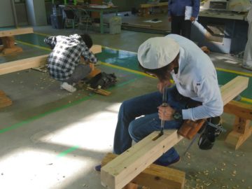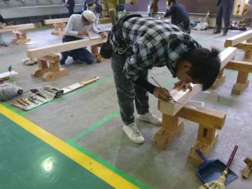 普段から兄弟子から教えてもらい、練習してきた成果を制限時間内に発揮することは難しかったようですが、色々な大工さんの仕事っぷりが見え、とても刺激になったようです。