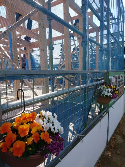 現場には花があり、現場の前を通る人たちの目を楽しませてくれます。