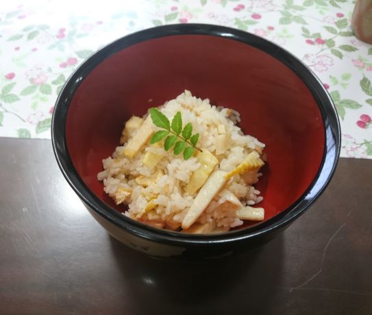その貴重なタケノコ総務課の奈美さん(嫁さん)に『筍ご飯』にしてもらいました!