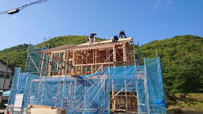 きちんと軒(のき)や庇(ひさし)がある木造住宅は構造体の時から美しいですね。