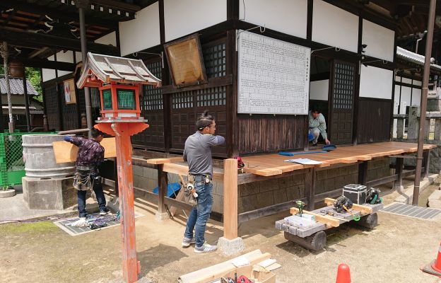 三日目となる今日は神社の回廊修繕中の現場体験です。