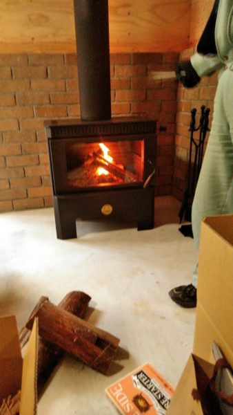 ↑ リブイング横の作業スペースに薪ストーブを設置させていただきました。
