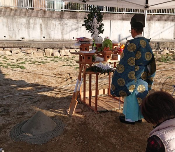 本日はお日柄も良く、素晴らしいお天気の下、地鎮祭を執り行わせていただきました。