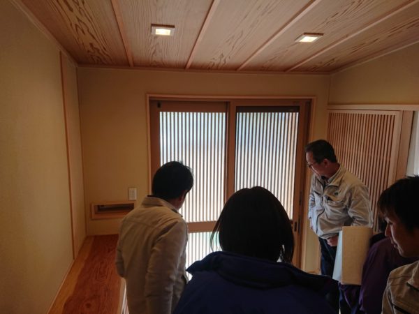 この竣工検査は、お引渡し前の最終チェックを兼ねて、デザインや収まりなどの意見交換を行い技術向上の勉強会も兼ねています。