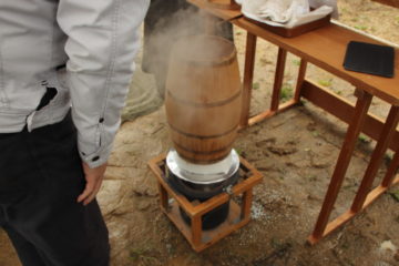 私たち参列者が釜にお米を入れるとボワ~ンと釜の中が共鳴するような不思議な音が響き渡ります。