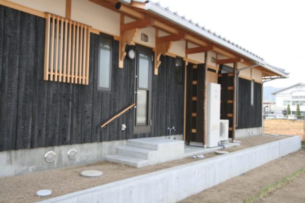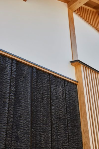 イニシャルコストが安く10数年で塗り替えが必要なサイディングの壁より、40年貼り替えの必要が無い『焼杉』がランニングコストの面と美しさからお勧めです。