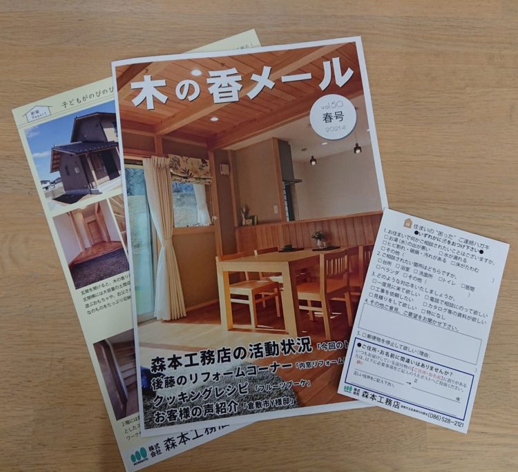 弊社では2カ月に一度お施主様にニュースレターをお送りしております。