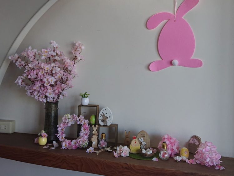 そして、弊社の玄関飾り棚には、スタッフが桜の飾りつけをしてくれ春爛漫です。
