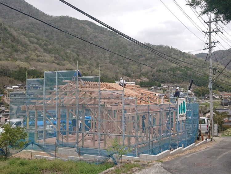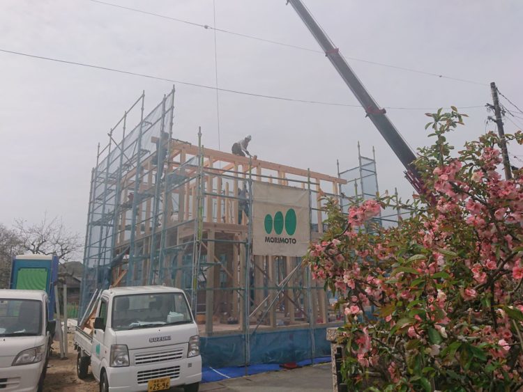 お天気に恵まれ、ポカポカ陽気でちょっと暑いくらいの中での作業でしたが、両現場とも順調に工事が進み、無事、棟を納めることが出来ました。