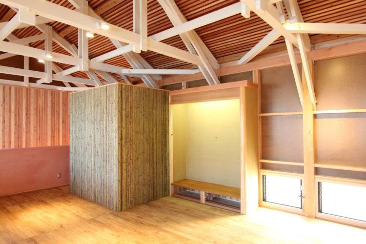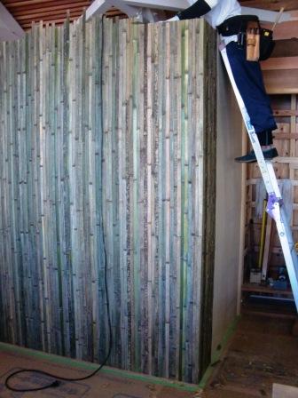 こちらの現場の壁には『木舞竹(こまいだけ)』を貼って仕上げています。