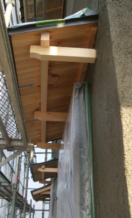 ↑ 工事中の庇(ひさし)