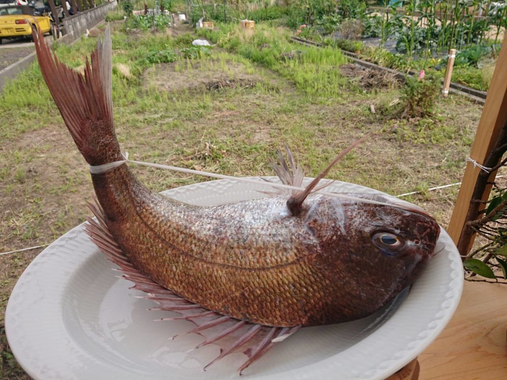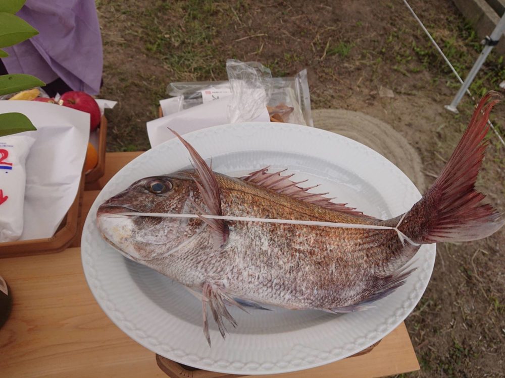 地鎮祭の祭壇にお供えされた鯛(タイ)も勢いよく喜んでいるようです。