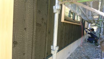 それは、外壁に『焼き板』を貼る作業をしているからです。