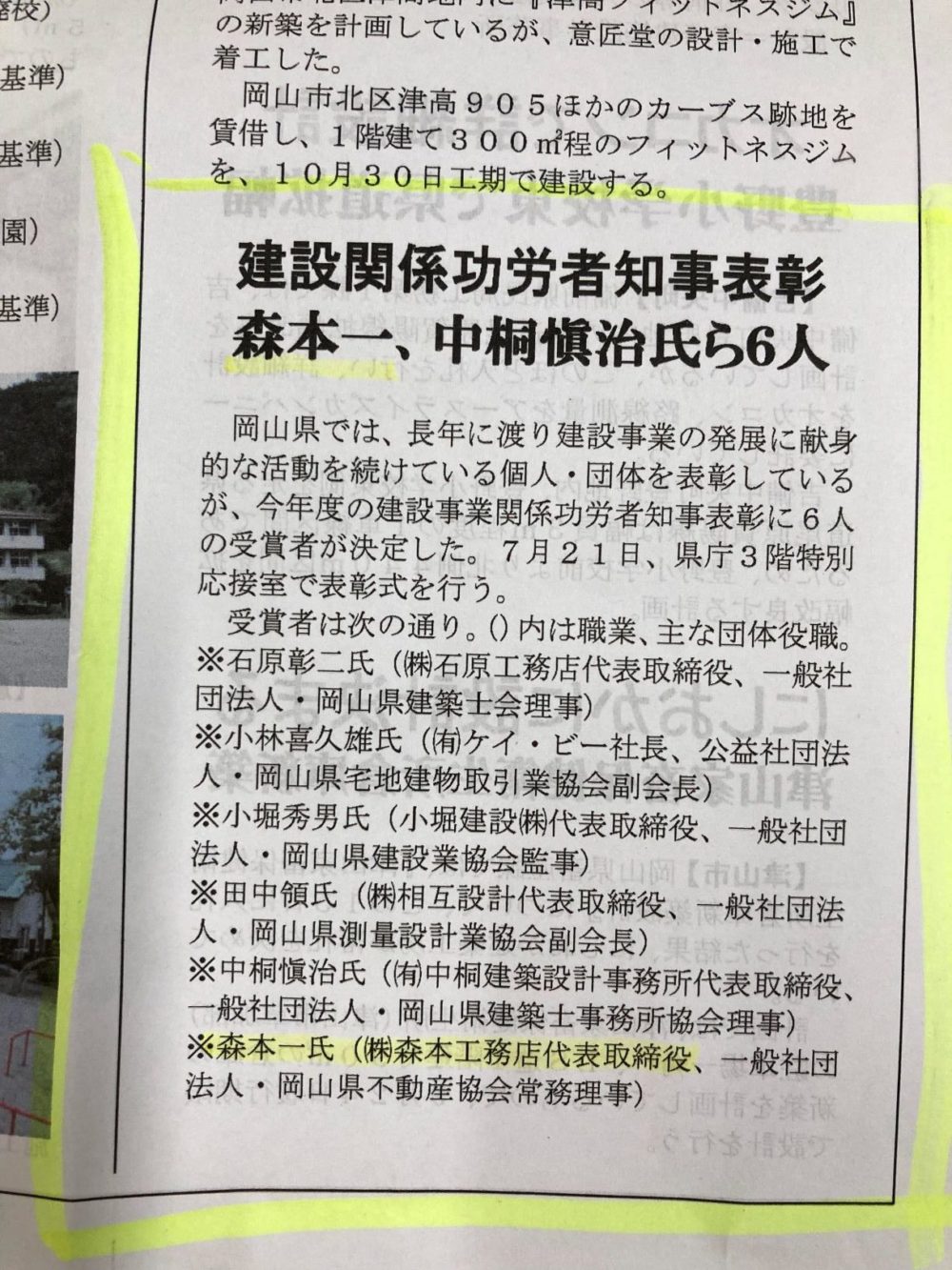 恥ずかしながら、今朝の建設新聞に名前が載ってました!