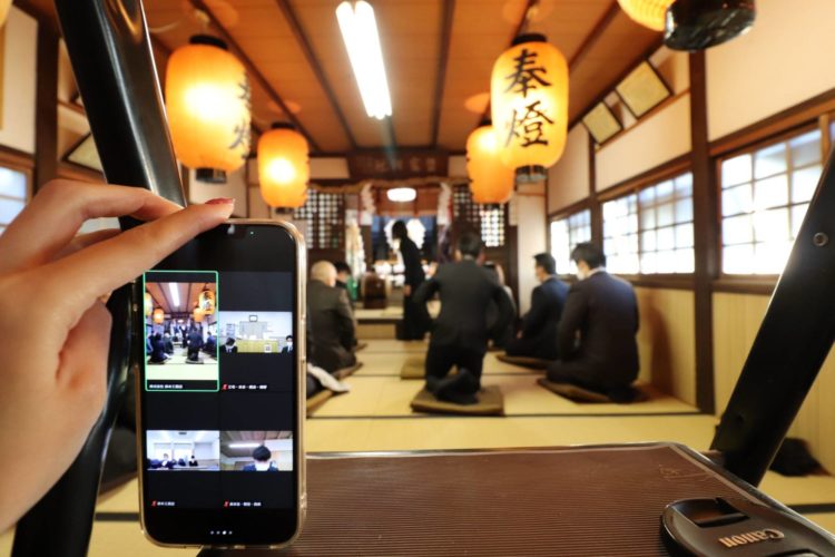 残りの社員は弊社内に分散し、オンラインでの参加で一緒に祈祷してもらいました。