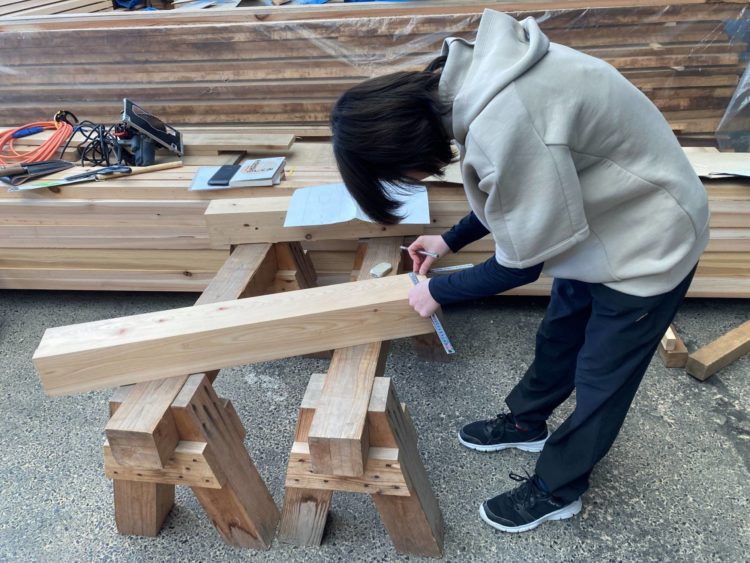 しかし、弊社の加工場に行ってみると2年目大工のYUIちゃんが『継手(つぎて)』の制作の練習をしていました。