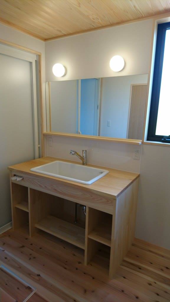 洗面カウンターに組み込んだティッシュケース入れがとても便利です!