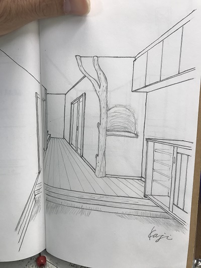そこで、「この木を自分ならこんな感じに使いたいな~」と思い、スケッチしてみました。
