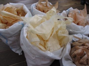 森本工務店の加工場で準備してもらった「カンナくず」