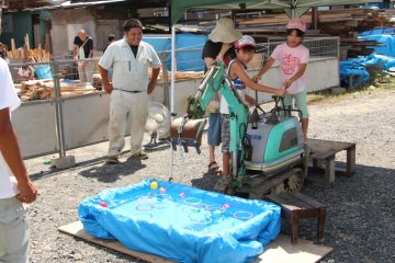 今年は、プールに輪っかを浮かせたものを吊り上げ