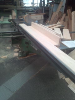 溝突き機(昇降盤)でサッシに取り付く所と壁下地のボードしゃくりをし、超仕上げカンナ盤で仕上げて面をとって完成です。