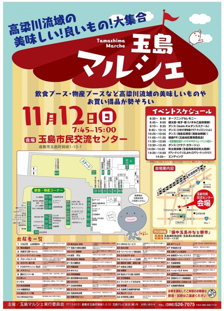 11月12日(日)は、玉島市民交流センターにて『玉島マルシェ』が開催されます。