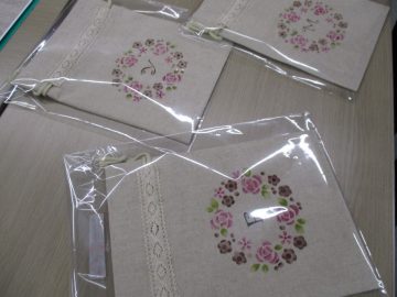 やさしい色合いのオリジナル巾着袋が完成しました~。