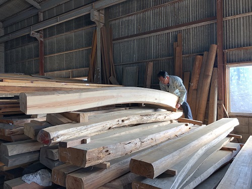 木材倉庫には、木材市で良い素材を見つけた時にお得に仕入れ、保管された材料がたくさんあります。その大切に管理された材料を、適材適所に生かし、ご家族にとって一つだけの家づくりをさせていただいています。