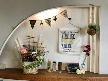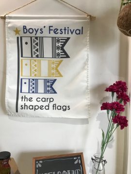季節も感じてもらえるよう、こいのぼりのタペストリーやカーネーションも飾りました。