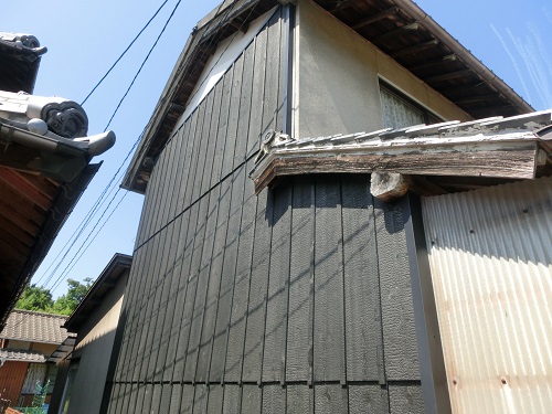 岡山の海沿いの地域は、肥沃で農業に適していますが、水はけが悪く、湿気の多い土地なので、家を長持ちさせるために欠かせない、気候風土になじむ外壁の板だったのでしょう。