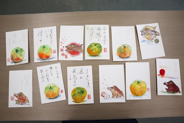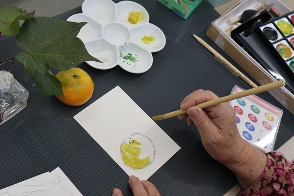 今回は小田先生をお招きして、『絵手紙づくり』を皆さんと一緒に私たちもチャレンジさせていただきました。