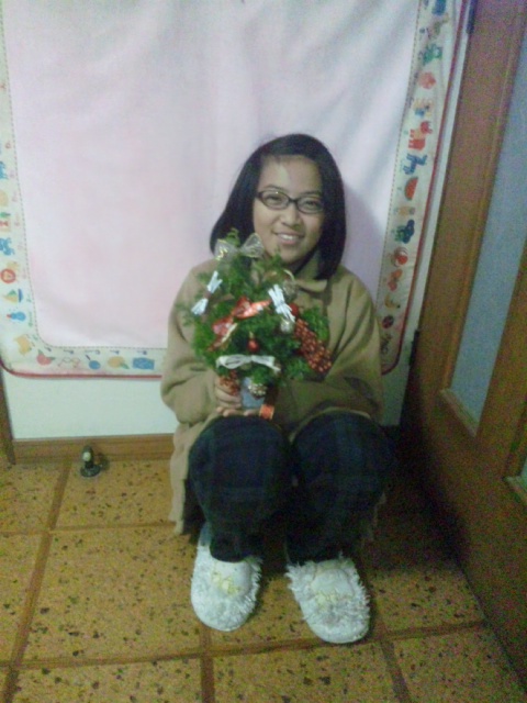 今日、末娘が、当社のものづくり女子会カフェで、杉枝のクリスマスツリーを作ってきました。