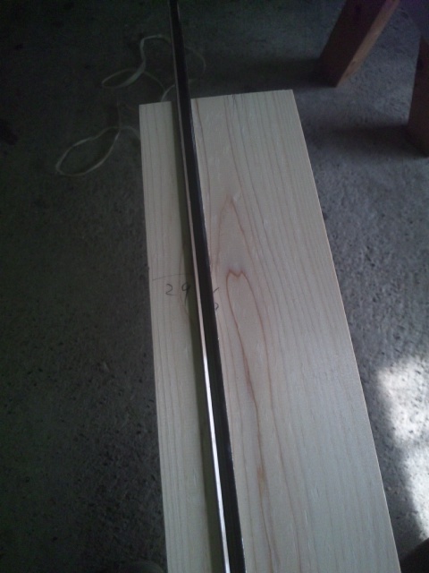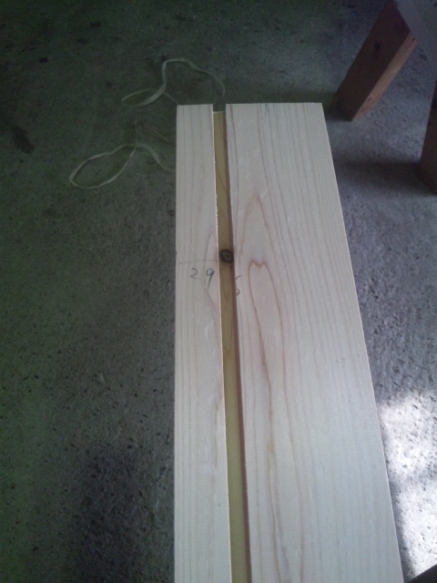 1例を挙げますと、写真は、敷居(床と床の境にくる)に使う桧の材料に、死に節が1つあります。引き戸のレールがくる場所に、幅を調整して加工し、溝をつくと節が溝の中に。そこに、金属製のレールを入れると、節が見えなくなります。