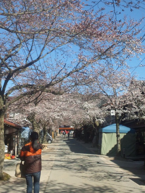 3分から5分咲きの桜でしたが、宿場町の面影が残る通りを家族で散策しました。
