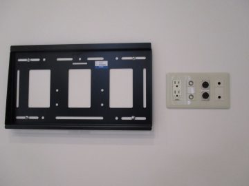 テレビのコンセント類一式を取り付けし、壁下地を補強します。