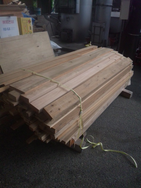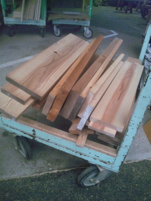 自社はもちろん、協力業者の倉敷木材様や原木工所様から端材を頂き、自由木工用の端材を業務の合間に加工中です。