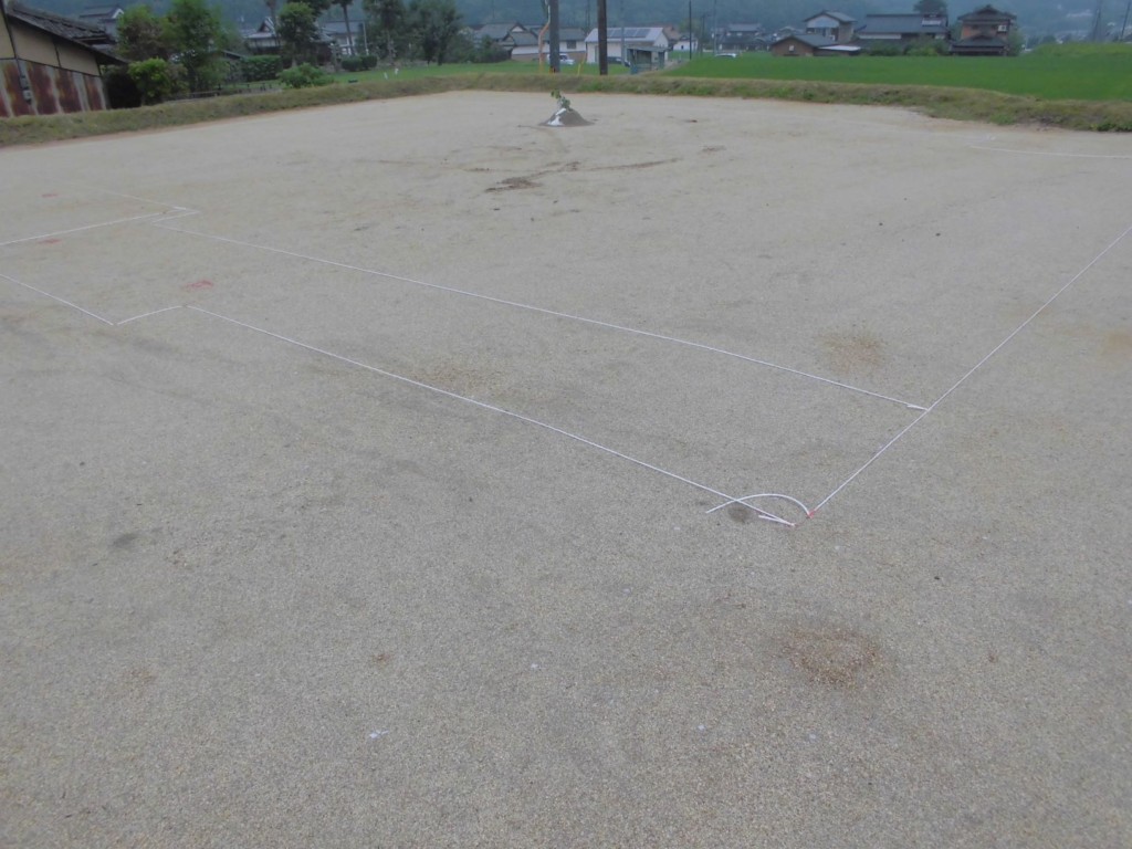 まず、『地縄(じなわ)』という建物を建てる位置を地面に白いビニール紐で印したものを張ります。