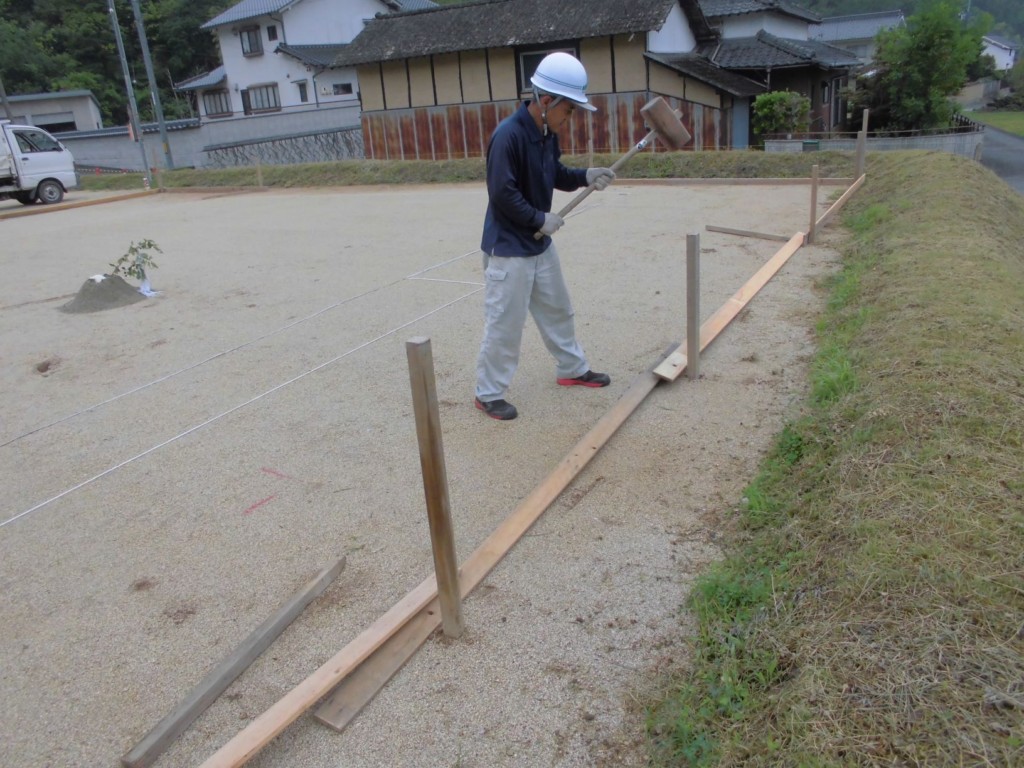 私たちが基礎工事に掛かる時、まず最初にする作業が『丁張』をかける事なんです。