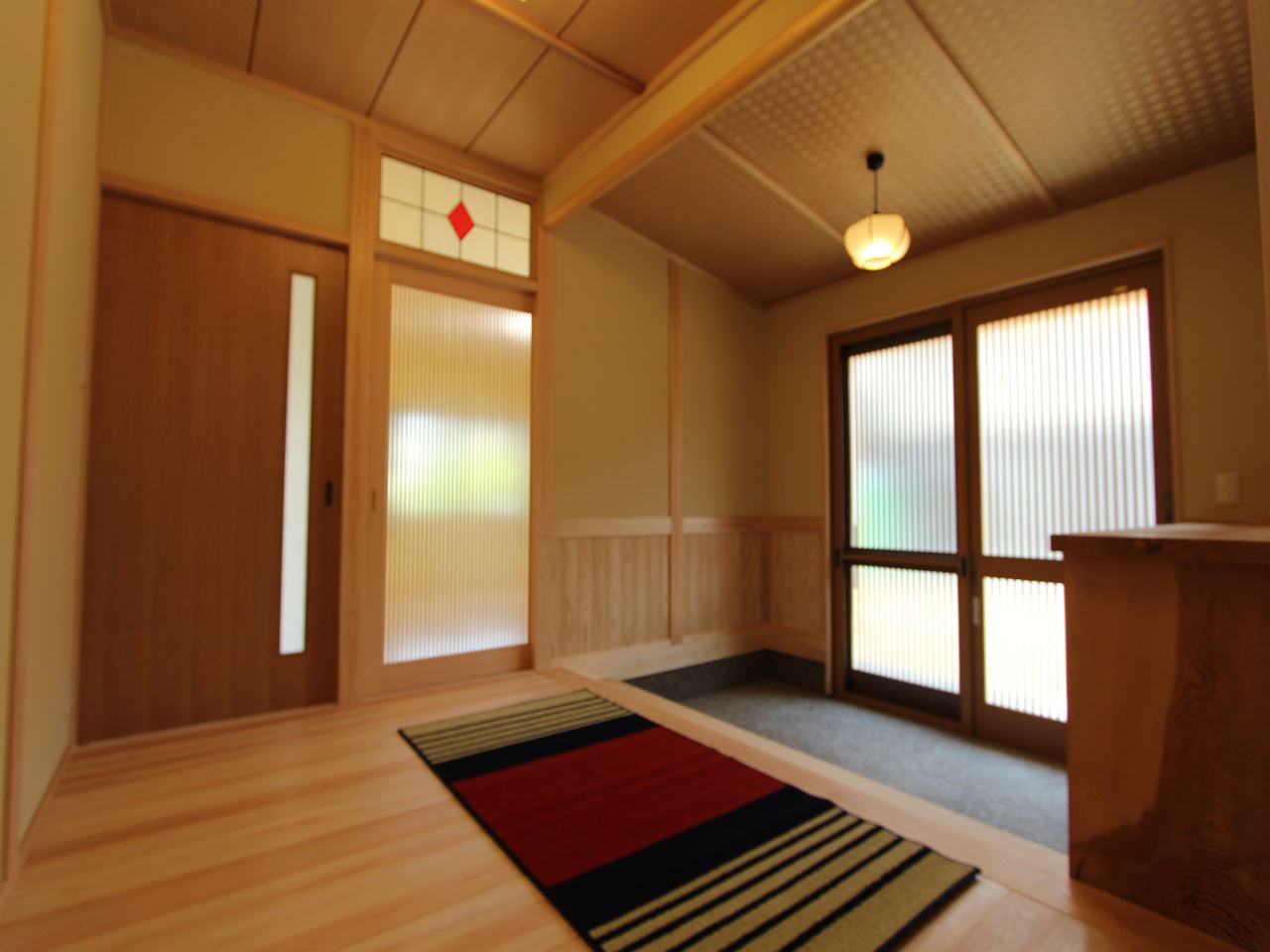 *明るい色(ライトブラウン)のドアや家具