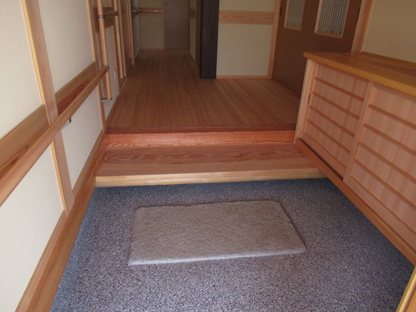 ⑤板石系御影石は、玄関土間の踏み石として、また、沓脱石として再生。