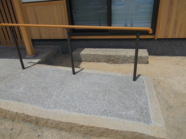 ⑥長石系の御影石はスロープと玄関ポーチまわりの縁石として再生。
