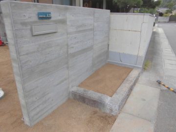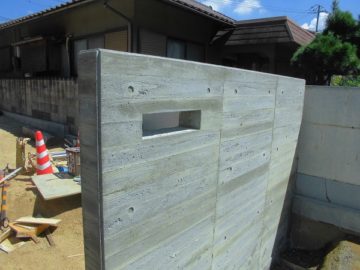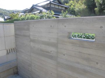 この擁壁はコンクリートの表面にわざと木目を見せるようにしたものです。