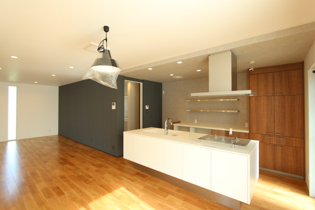 I型キッチンには壁に隣接した隣接型と、壁から離れた対面型があります。